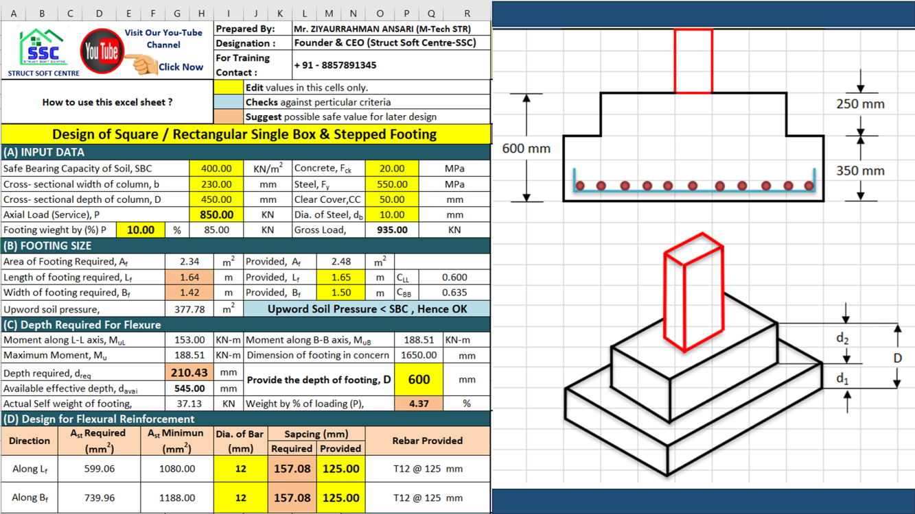 Stepped Square & Rectangular Footing Design (SSCEST012)
